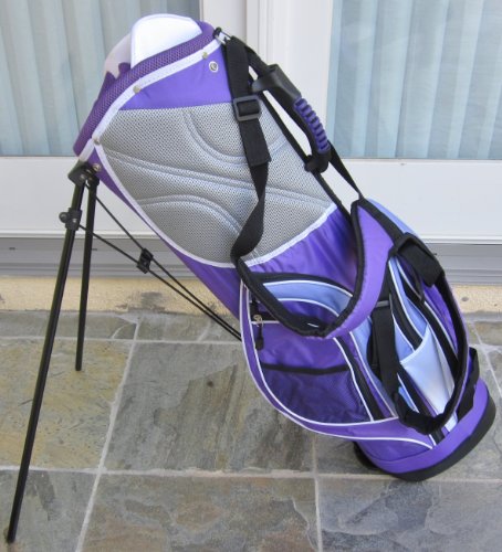 This Deluxe Ladies Purple Colored Golf Bag is the best golf bag you'll ever own. Great for carrying or using a pull cart or driving cart. This Lightweight and extremely durable bag offers full graphite shaft protection, lined and divided club compartments, umbrella holder, rain hood, dual shoulder straps for even weight distribution, automatic stand, large zippered storage pockets for anything and everything you'll need with you on the course, and just about anything you could ever ask for in a golf bag. This is truly a luxurious bag and will provide you with a lifetime of enjoyment on the golf course.